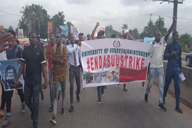 Students of the University of Benin (UNIBEN) have taken to the streets to protest the ongoing strike by Academic Staff Union of Universities (ASUU), which entered 80th day.