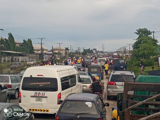 The protest caused heavy vehicular traffic on the busy Ughelli-Patani section of East-West Road and the major roads in the town.