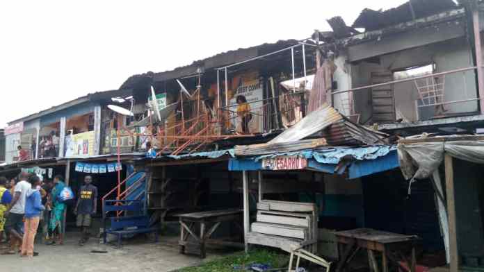 Though no casualty was recorded from the incident, the building housing the shops was almost completely razed and luxury goods belonging to business owners were destroyed.